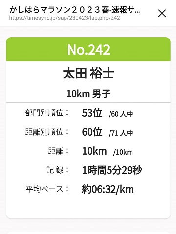 10キロのペースはやはりきつかったのでアップアップながらなんとか走りきれました。