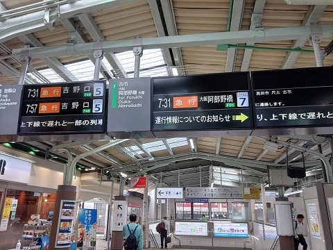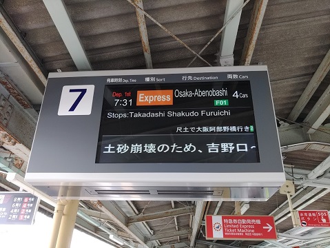 前日までの雨で近鉄南大阪線(吉野線)の吉野口から南が不通だったのじゃ(7:24)