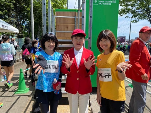 仙台市長の郡和子氏、谷川真理氏、高橋尚子氏が見えます