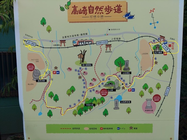 細い黄色線のとおりに山の尾根を歩くことになるのだなと覚悟したわたくしでした(^^)