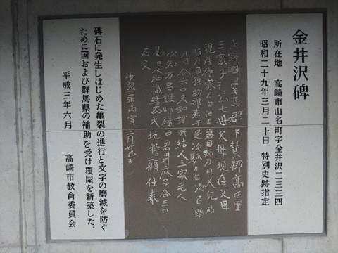ちなみに左から山上碑(やまのうえひ)、多胡碑(たごひ)、金井沢碑(かないざわひ)といいます。