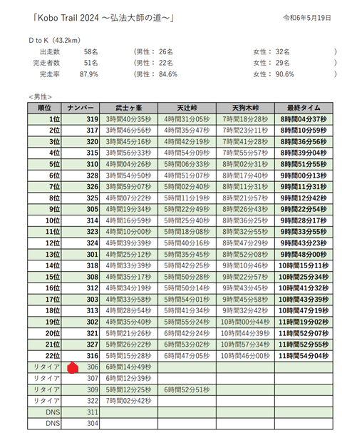 自分は306。自分より後ろにいて途中でリタイヤした人もいたのだ。