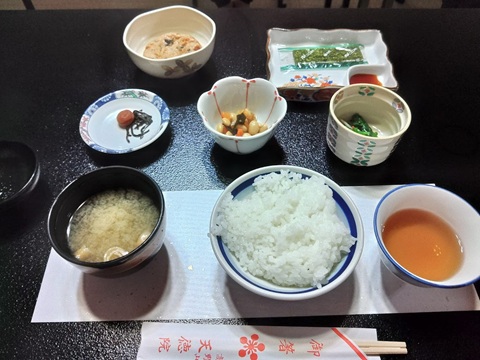 翌日の朝ご飯は宿坊で。たいへん質素でそれなりに尊い朝ご飯。