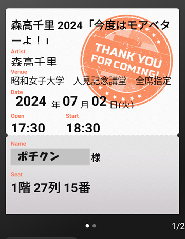 チケットは1階の27列目