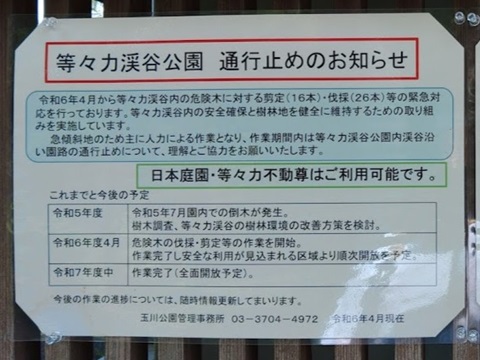 等々力渓谷は危険木の伐採のために通行禁止区域がたくさんもうけられていました