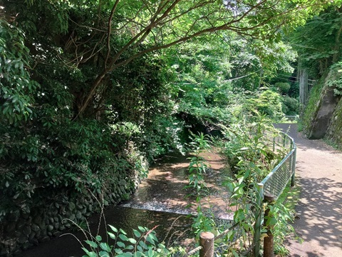帰り道で。等々力渓谷を流れる川は谷沢川。