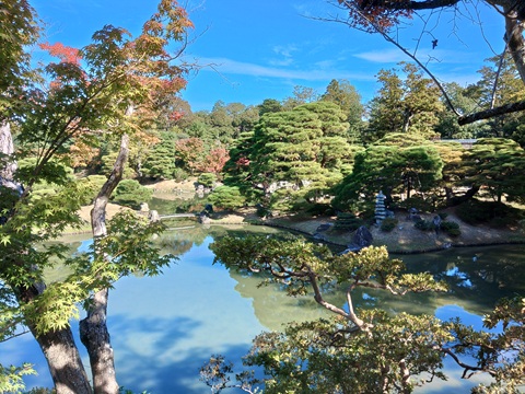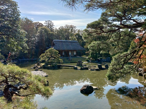 松琴亭は、桂離宮で最も格の高い茅葺き入母屋造りの茶亭。
