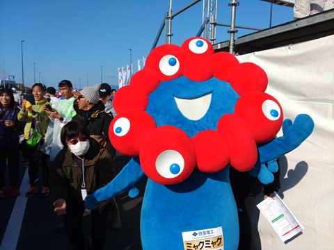 ミャクミャクさんが来た(^^)ゼッケンつけてはる(^^)