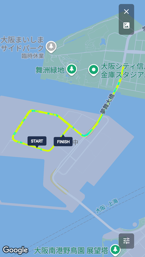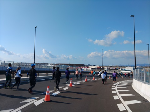 会場(大屋根を一週ではない)を周回してから夢舞大橋を渡って折り返してくるというコースは
