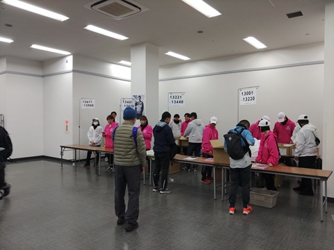 受付会場は一方通行で、戻るためにはいったん出口からでてから入り直すことになります。