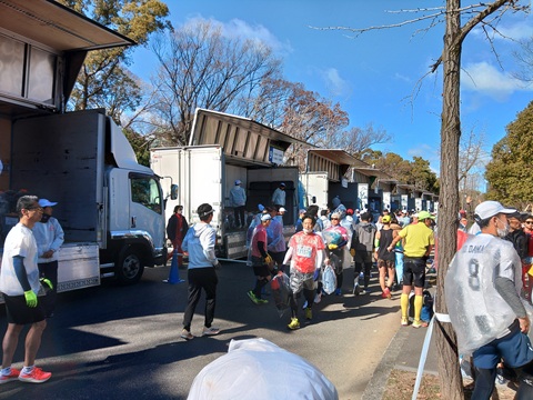 バスでゴール地点に到着した時にはまだランナーがゴールしてきていました。