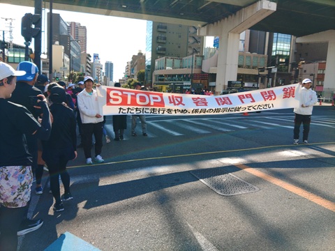 大阪城公園内のグラウンドで整列したあとはブロック順に環状線に沿った玉造筋の道路上へ誘導されます。