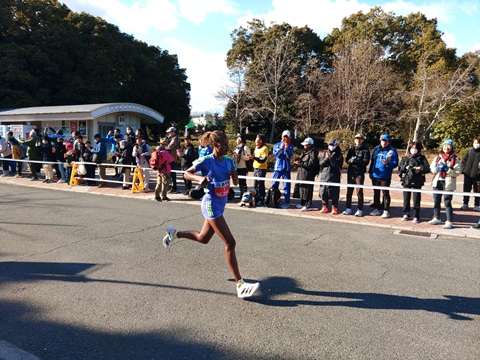 スタジアムの進入路で応援しました。優勝したエチオピアのエデサ。