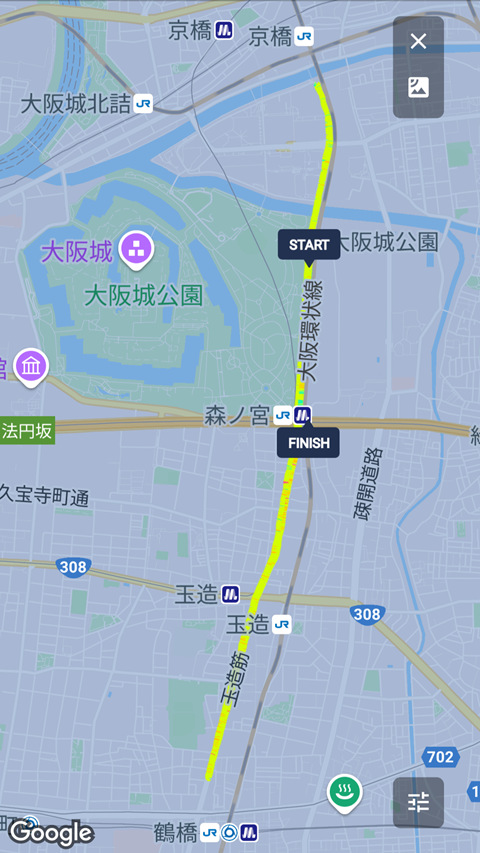 一度南下して、折り返して北上し、京橋の手前でさらに折り返して南下するコースでしたが、