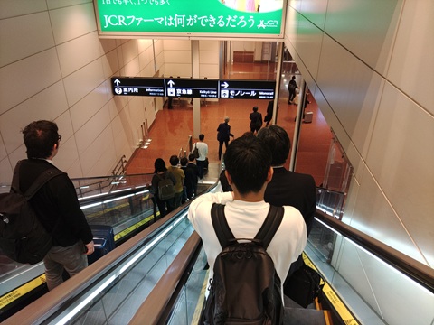 羽田空港で京急線に乗り継ぎ。東京の人はやはりエスカレーター左にとまる。