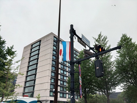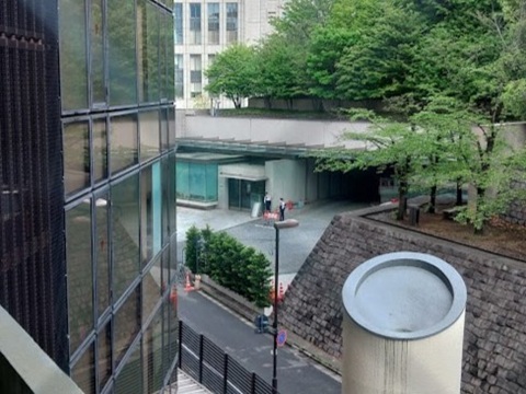 ここは首相官邸のとなりにあるので警視庁のかたがホテルへの進入路をふさいで警備してくれてはります。