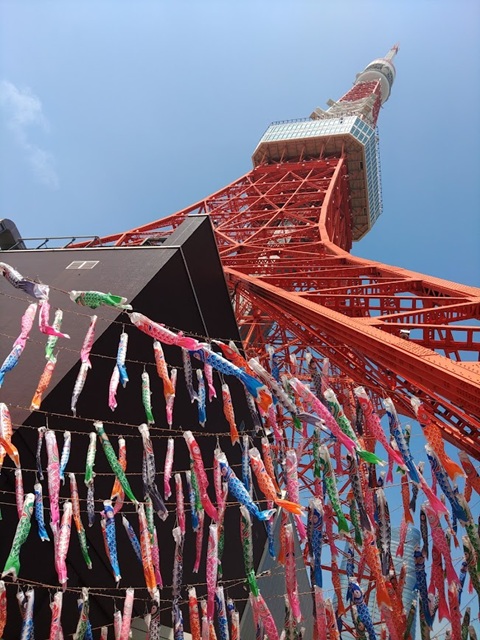 時節柄、東京タワーでは鯉のぼりが泳いでいました(^^)