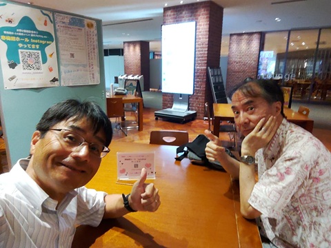 在学時には、なかった良心館のラウンジとおぼしきところで夜の部メンバとの待ち合わせ(^^)