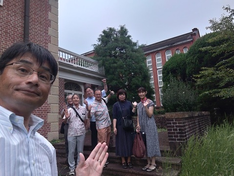 藤馬ゼミ1983年度生結成40周年企画「卒アル写真をとった場所で再現写真を撮ろう!」のためにアーモスト館に向かいました。