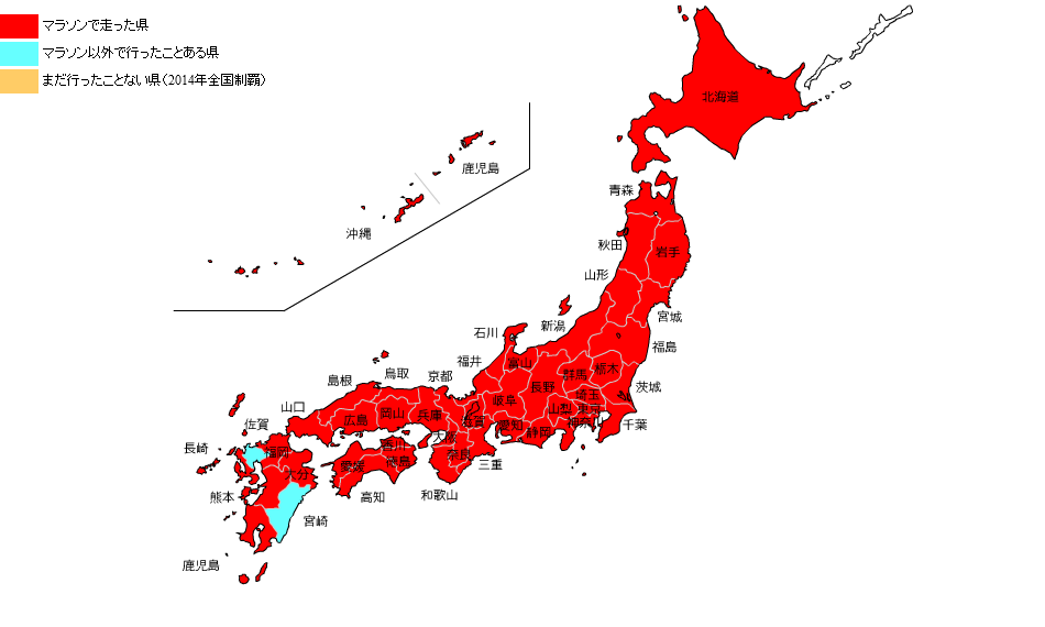 ベージュはまったく行ったことない県(2014年全都道府県制覇しました)。