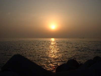天気も最高、満潮は5時半、日没は6時半、波の高さは1m。
