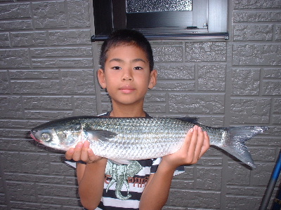 自分は内向きで群れからはぐれた迷いアジ3匹と、自己記録の57cmボラを