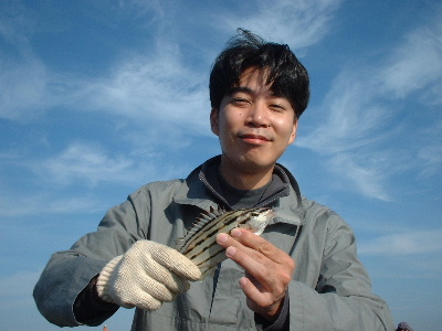 ボラの一本抜きに成功して満面の笑顔v(^_^)v