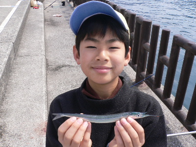 こうすけ氏、初サヨリをゲット!