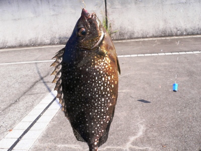 本日の成果。バリコ26cm。グレ、ミニイサギ、へんなハゼ