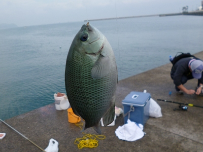 すでに朝のお魚朝ごはんタイムがはじまっていたらしくいきなりそこそこの大きさのグレにびゅうと
