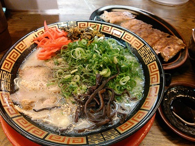 晩ご飯は定番の長浜ラーメン