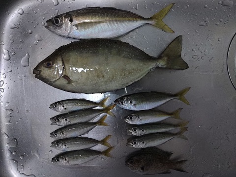あと豆アジを少々と、お守りとして水くみバケツの中で飼っていたオセンが1匹。